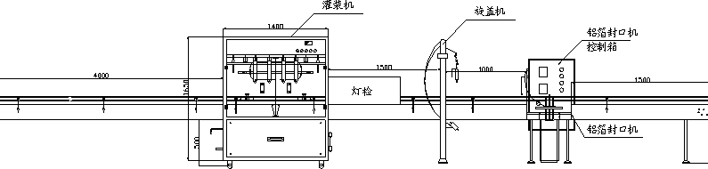 | 方案設(shè)計三:灌裝機+旋蓋機+鋁箔封口機 |