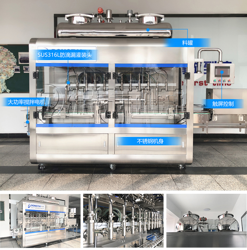 3、  該設備在設計上大大縮短了下料斗到灌裝頭的灌裝距離,克服了含油量大的物料(如:含芝麻粒的辣椒油)在灌裝過程中出現的有些瓶油多,有些瓶醬多的灌裝誤差大的缺點。