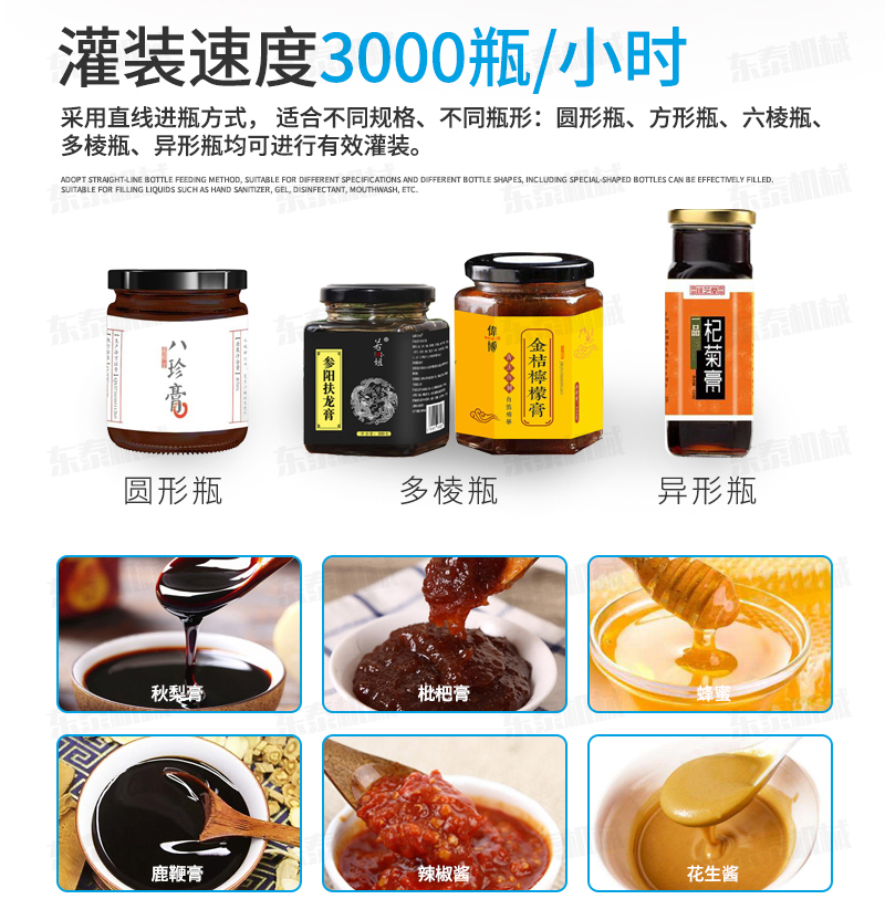 隨著我國(guó)包裝行業(yè)的飛速發(fā)展,近年來(lái)我國(guó)的蜂蜜食品行業(yè)逐步發(fā)展為我國(guó)國(guó)民經(jīng)濟(jì)中增長(zhǎng)較快的,關(guān)注蜂蜜安全和身體健康的今天,基于綠色環(huán)保理念日益成熟的必然趨勢(shì),為了能夠滿足社會(huì)的需求整套智能型瓶裝蜂蜜灌裝機(jī)械設(shè)備向自動(dòng)化、智能化、高質(zhì)量、高效的方向邁進(jìn)。伴隨著每個(gè)領(lǐng)域都逐漸步入到全自動(dòng)智能的時(shí)代,與以往的設(shè)備來(lái)說(shuō)蜂蜜灌裝機(jī)設(shè)備已經(jīng)是發(fā)生了翻天覆地的改變其操作更加簡(jiǎn)略,一鍵操作,不只提高了企業(yè)的生產(chǎn)制造功率,也為企業(yè)降低了辛勤勞動(dòng)本錢的花銷。可以很好的避免不必要的麻煩發(fā)生同時(shí)蜂蜜灌裝機(jī)得到更多客戶的信任。