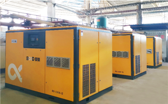 針對(duì)上述問(wèn)題,葆德采用新一代智能永磁變頻空壓機(jī)。改造后未改造前,采用132KW某機(jī)型,壓縮空氣單位能耗:0.119KWh/mv³,采用葆德BD-132KW功率后,排量為33.6m³/min,改造后縮空氣單位能耗:0.079KWh/m³,省電33.6%。
