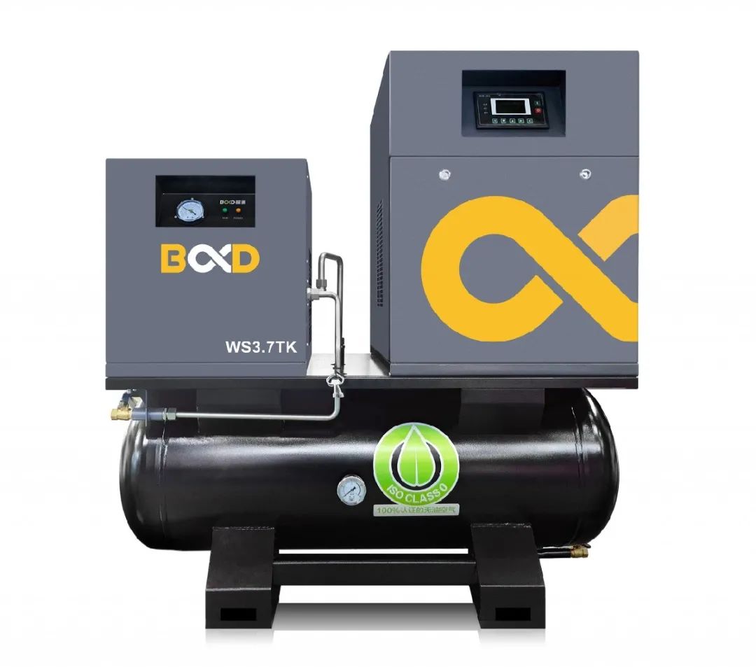 6. 葆德無油渦旋一體機,集成了無油渦旋空壓機,冷干機及儲氣罐,預(yù)留了除塵精密過濾器安裝位置,安裝及使用更方便。