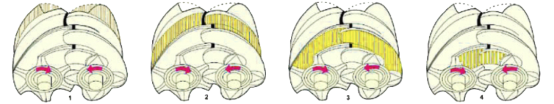 ■ 螺桿轉子相互嚙合,壓縮腔內容積減少,從而提高氣體壓力;