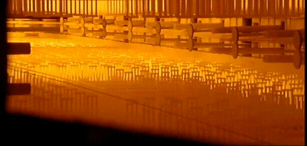玻璃成型:加熱后的玻璃熔液流入錫槽且浮在熔化的金屬錫液之上,玻璃成型的一般有吹制、壓制、離心旋轉(zhuǎn)、燒制(輔助)等方式,平板玻璃通過(guò)垂直引上法或平拉法、壓延法壓制而出,形成寬厚合適、均勻平整的的玻璃帶。