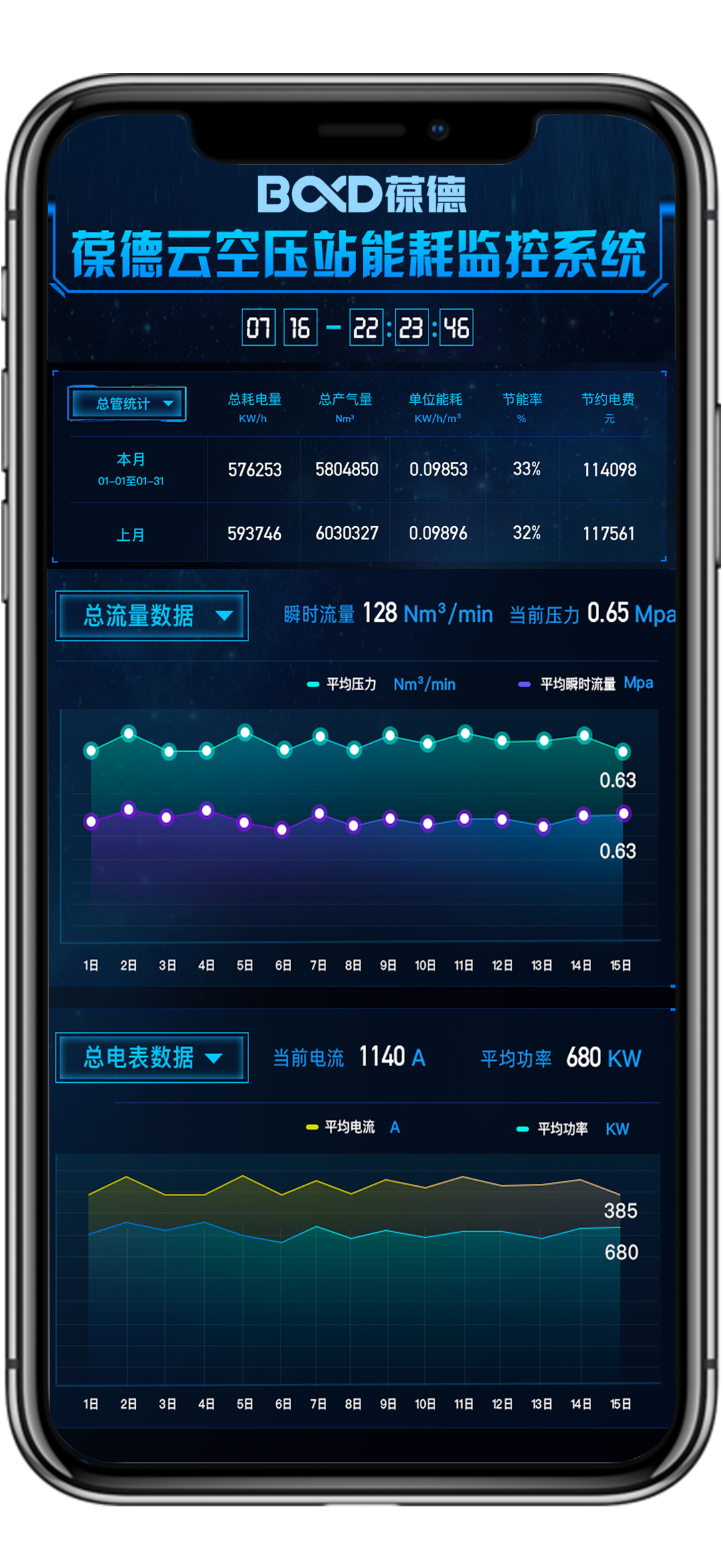 從單臺(tái)到系統(tǒng)的節(jié)能,設(shè)備稼動(dòng)率、單位能耗、累計(jì)耗電等,單壓力帶運(yùn)行實(shí)際能效減少設(shè)備壓差,恒定壓力,減少車(chē)間無(wú)效能耗,實(shí)現(xiàn)對(duì)空氣空壓機(jī)更加經(jīng)濟(jì)、高效的管理,降低企業(yè)能耗,提升企業(yè)效益。