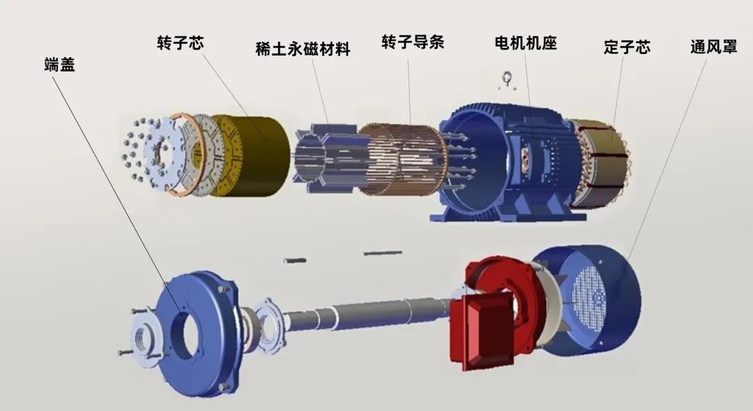 ▲典型的永磁電機拆解圖