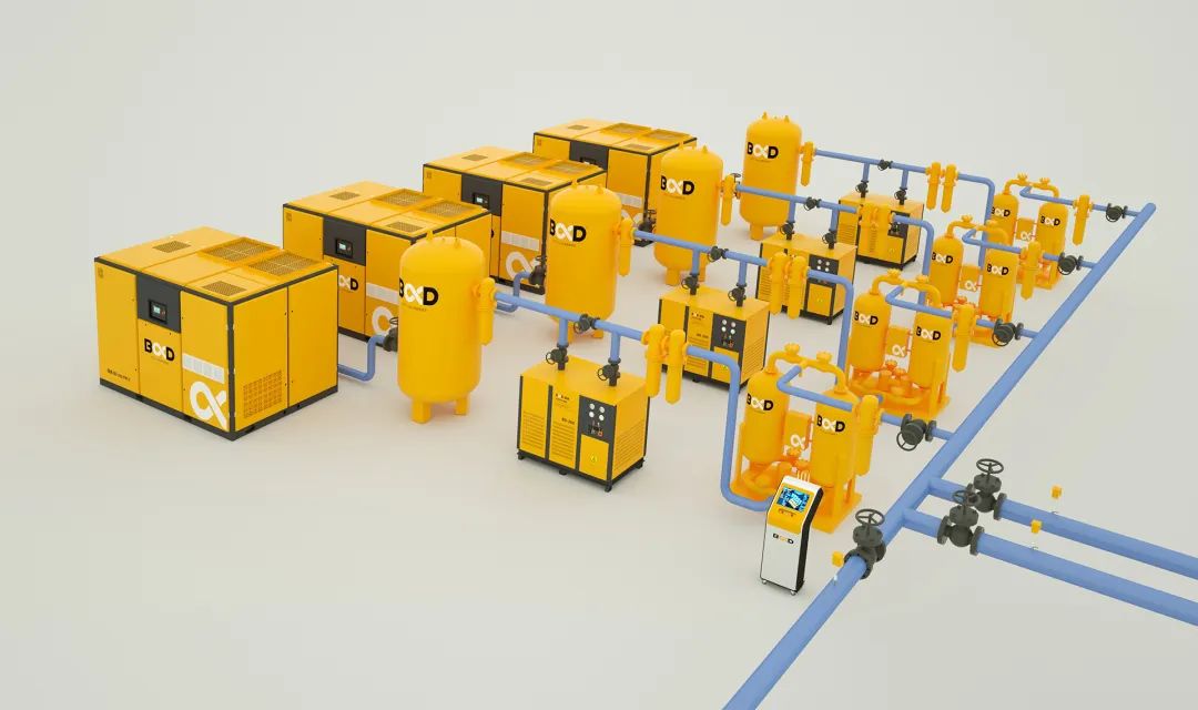 對于壓縮空氣需求量大的行業(yè),葆德將多臺空壓機(jī)通過AI數(shù)據(jù)技術(shù)組合到一起,形成了更為智能化的空壓站房,新增了用氣恒壓、遠(yuǎn)程管理、自動抄表、智能聯(lián)控等數(shù)字化功能。