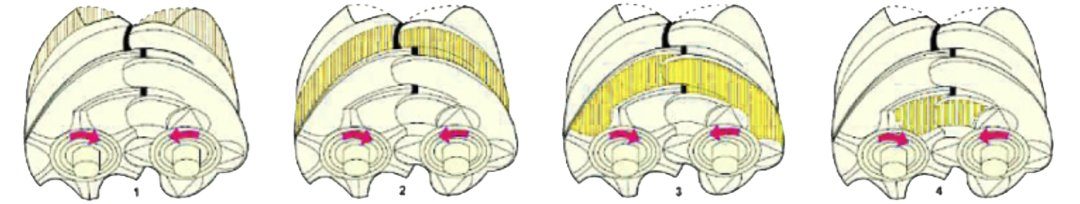 離心鼓風(fēng)機是電機帶動風(fēng)機葉輪旋轉(zhuǎn),使葉片之間的氣體在離心力的作用下甩出,外界氣體通過葉輪中間形成的負(fù)壓吸入,達到連續(xù)鼓風(fēng)的目的。多級離心風(fēng)機隨風(fēng)壓變化流量變化較大。風(fēng)量調(diào)節(jié)可通過變頻進行,變頻后排氣壓力會相應(yīng)降低,當(dāng)風(fēng)量受系統(tǒng)阻力增加而大幅減少,當(dāng)阻力增加到一定極限時,鼓風(fēng)機系統(tǒng)將無法曝氣,因此鼓風(fēng)機的變頻范圍受到一定限制。