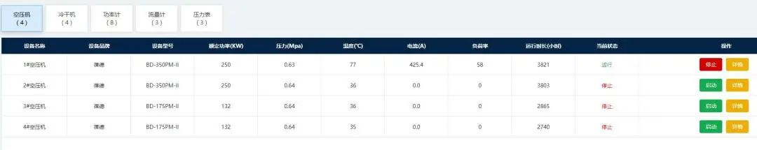 空壓站房管理員需要對(duì)在多個(gè)車(chē)間用氣,多臺(tái)設(shè)備運(yùn)行的情況進(jìn)行管理。