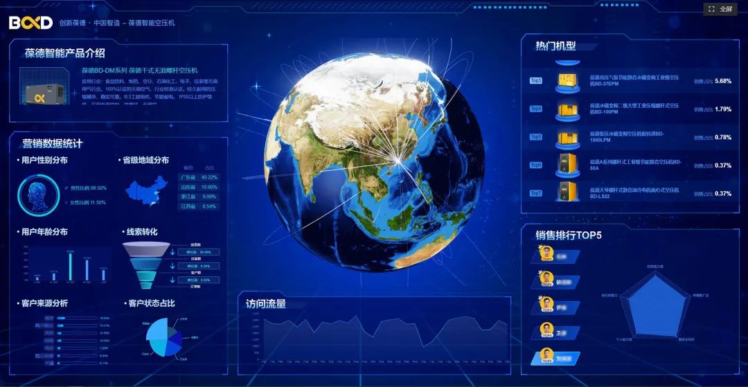 ▲葆德云管理系統(tǒng)——銷售中心展示屏