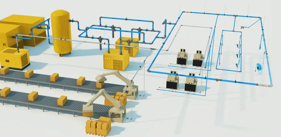 通過在管路分段安裝流量計,檢查各段壓降與流量損失,采用環(huán)型管網(wǎng),平衡各點用氣壓力。每提高1公斤壓力,多增加7%-10%的能耗。