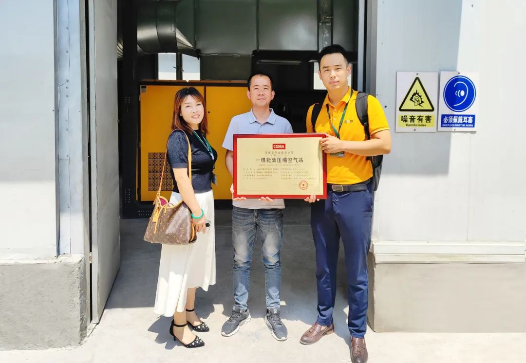 以上空壓站檢測數(shù)據(jù)由國家質(zhì)量監(jiān)督機構檢測認定,為客戶頒發(fā)一級能效壓縮空氣站認定證書并授牌。