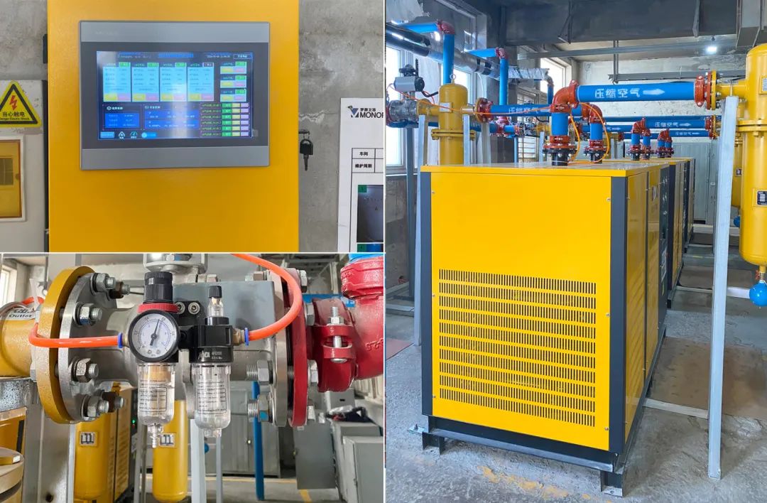 4、智能聯(lián)控:空壓機與后處理設備自動關聯(lián)開關機,配套獨立自動閥門,保障了高品質(zhì)用氣。