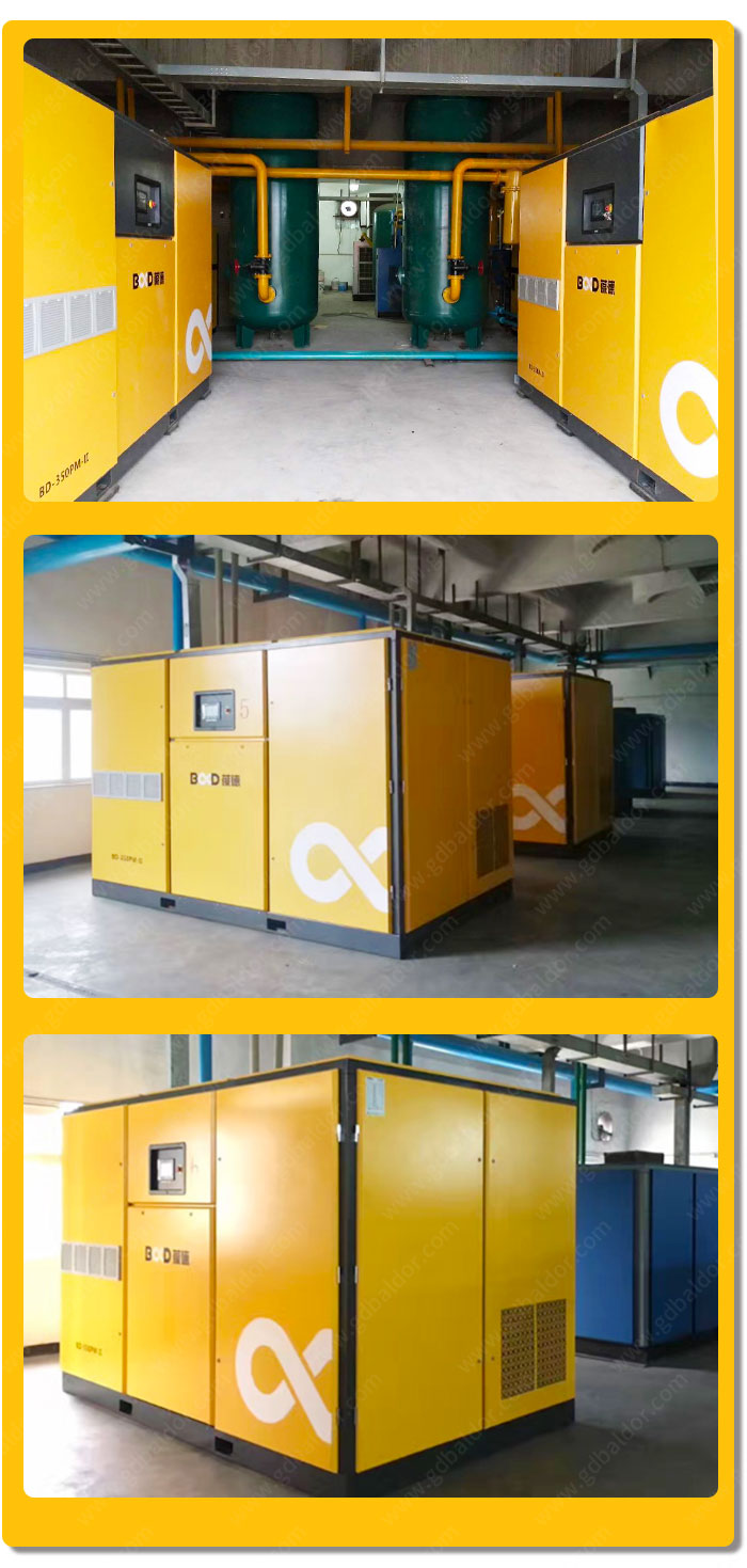 該項目采用2臺 葆德永磁變頻-BD-350PM-II型 兩級壓縮空壓機進行布局,節(jié)能效果明顯,30%以上。