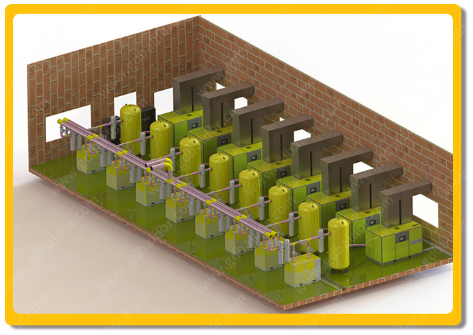 一期采用4臺葆德BD-200A-II兩級壓縮螺桿空壓機,
